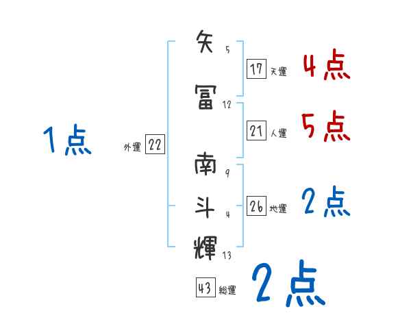 矢冨南斗輝さんの画数の鑑定結果