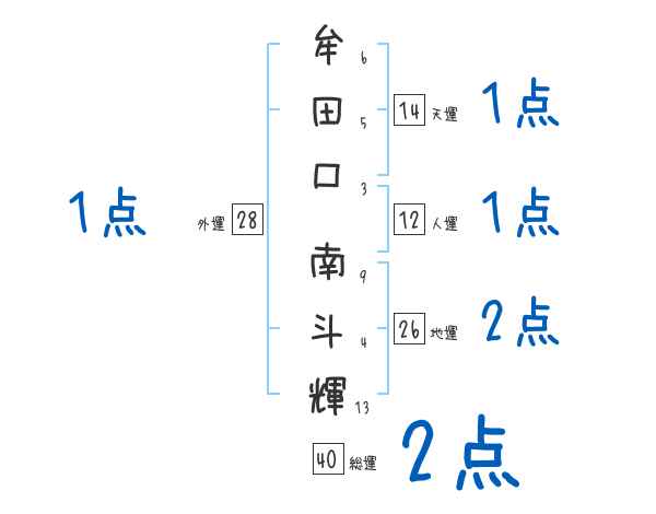 牟田口南斗輝さんの画数の鑑定結果