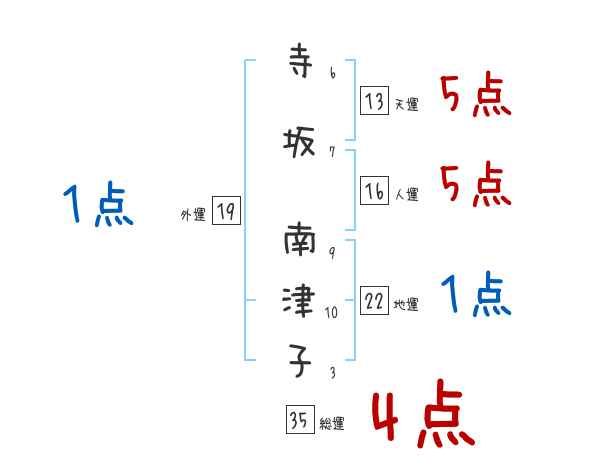 寺坂南津子さんの画数の鑑定結果