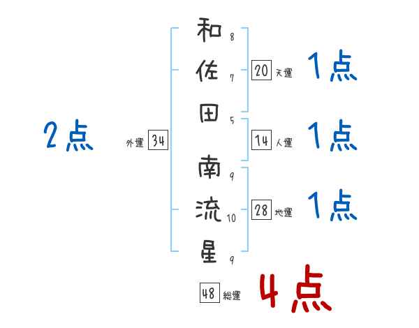 外運![]() | 和佐田南流星さんの外運は34画の2つ星!独創性に優れるが、自尊心が強く災難に注意しましょう。 生活面を象徴する運勢です。外部から受ける影響力を表し、結婚運、家庭運や職場、環境への順応性を表します。 |