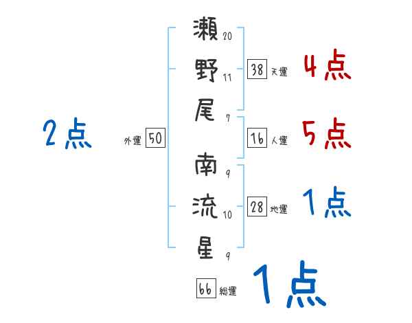 瀬野尾南流星さんの画数の鑑定結果