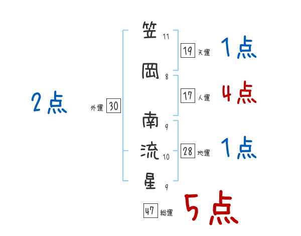 笠岡南流星さんの画数の鑑定結果