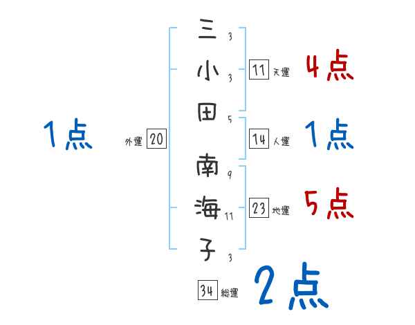 三小田南海子さんの画数の鑑定結果