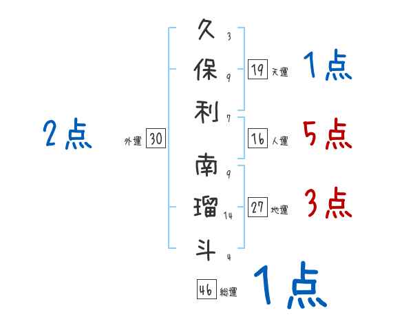 久保利南瑠斗さんの画数の鑑定結果