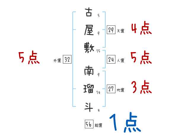 古屋敷南瑠斗さんの外運は32画の5つ星