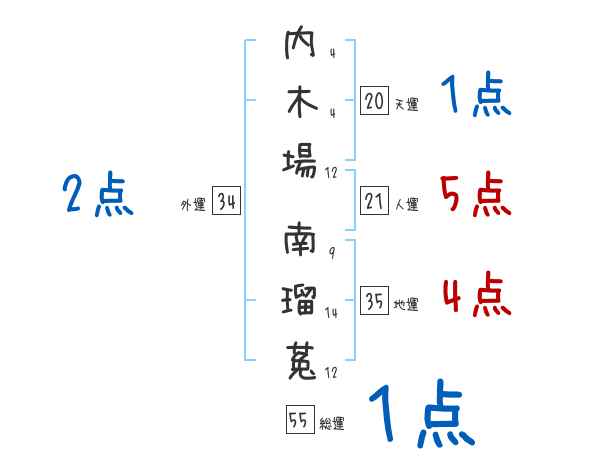 内木場南瑠菟さんの画数の鑑定結果