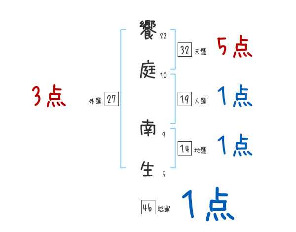 饗庭南生さんの画数の鑑定結果