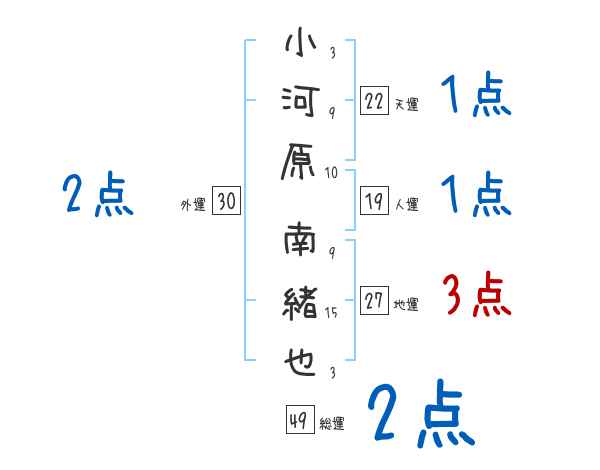小河原南緒也さんの画数の鑑定結果