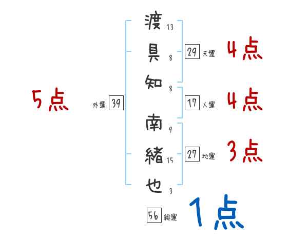 渡具知南緒也さんの画数の鑑定結果
