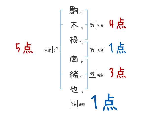 駒木根南緒也さんの画数の鑑定結果