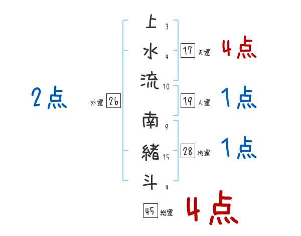 家系が持つ宿命的な運勢を表します。祖先から受け継いだ苗字ですので自分の力が及びません。家柄を象徴します。