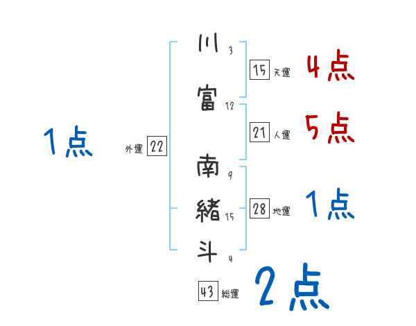 他にも占いサイトは数多くありますが、占い師や流派によって、字画の数え方運勢の吉凶が異なり、当サイトで運勢が良くなくても、他のサイトで良い運勢が出ることがあります。