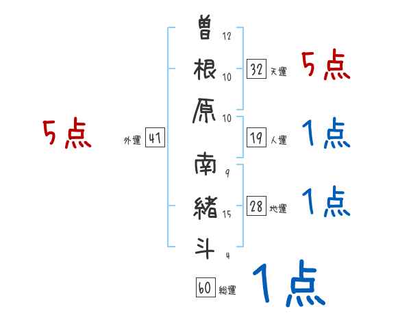 曽根原南緒斗さんの画数の鑑定結果