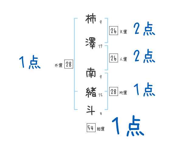 外運![]() | 柿澤南緒斗さんの外運は28画の1つ星!家庭環境に注意。スポーツで活躍できる能力があるかも。 生活面を象徴する運勢です。外部から受ける影響力を表し、結婚運、家庭運や職場、環境への順応性を表します。 |