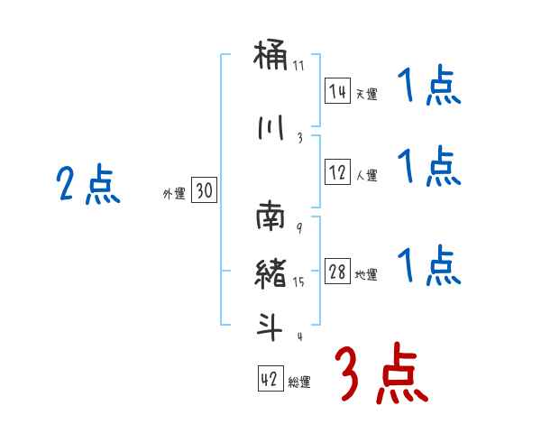 桶川南緒斗さんの画数の鑑定結果