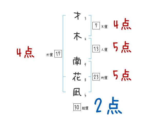 天運![]() | 才木南花凪さんの天運は7画の4つ星!強い意志や信念を持ち独立心が強い。自立する。 家系が持つ宿命的な運勢を表します。祖先から受け継いだ苗字ですので自分の力が及びません。家柄を象徴します。 |