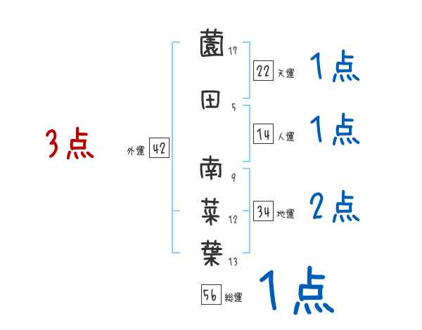 薗田南菜葉さんの画数の鑑定結果