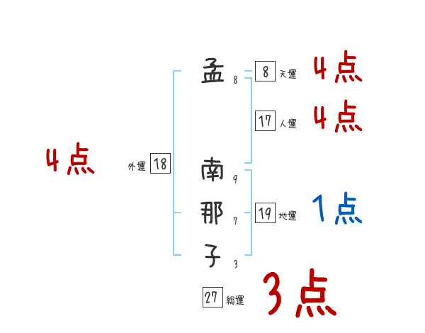 孟南那子さんの画数の鑑定結果