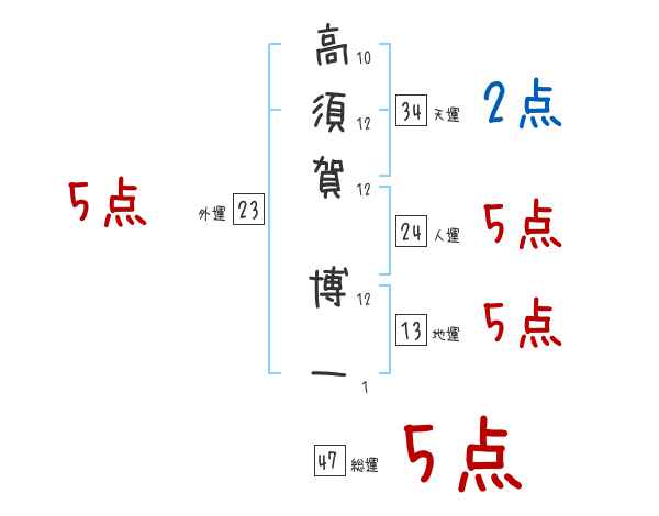 高須賀博一さんの画数の鑑定結果