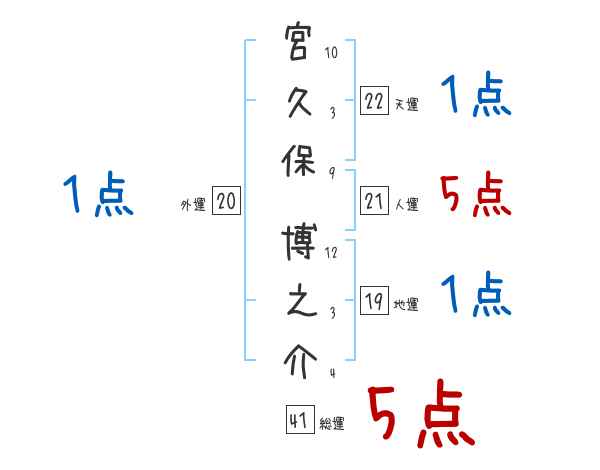 宮久保博之介さんの画数の鑑定結果