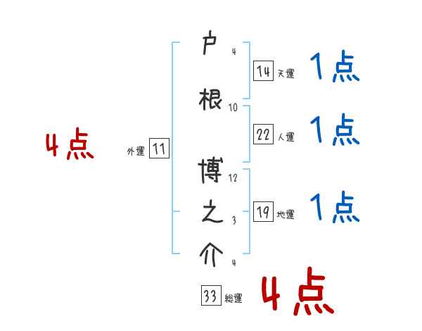 天運![]() | 戸根博之介さんの天運は14画の1つ星!人に対して優しいがストレスを溜め込みがち。人間関係のトラブルを避けるよう気をつけましょう。 家系が持つ宿命的な運勢を表します。祖先から受け継いだ苗字ですので自分の力が及びません。家柄を象徴します。 |