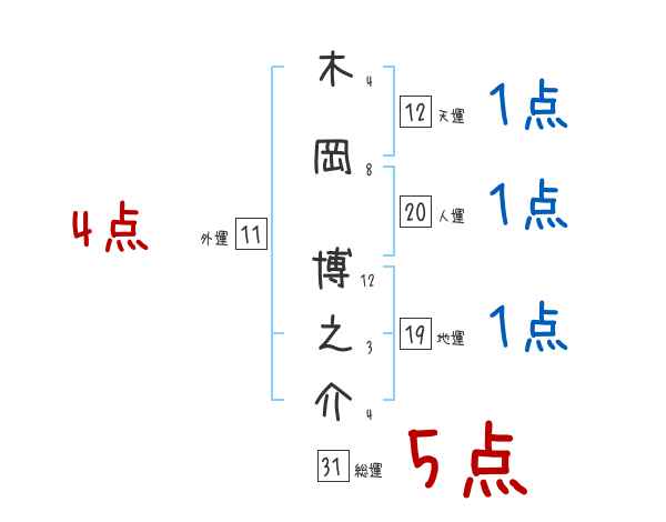 総運![]() | 木岡博之介さんの総運は31画の5つ星!社交性があり判断力に優れる。順風満帆な人生で円満な生活。 あなたの人生を表す1番重要な運勢です。生涯を通じて影響する総合運となり、主に50歳以降の晩年期に影響を及ぼします。 |