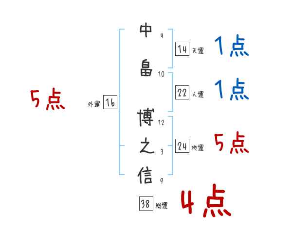中畠博之信さんの画数の鑑定結果