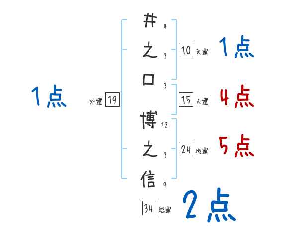 天運![]() | 井之口博之信さんの天運は10画の1つ星!不安を感じやすい傾向。ストレスを抱えないように注意しましょう。 家系が持つ宿命的な運勢を表します。祖先から受け継いだ苗字ですので自分の力が及びません。家柄を象徴します。 |