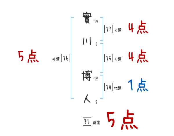 實川博人さんの画数の鑑定結果