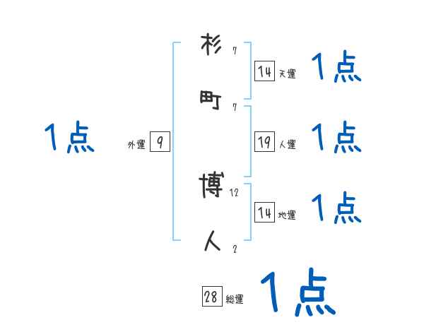 杉町博人さんの画数の鑑定結果
