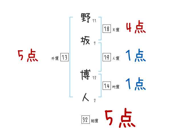 野坂博人さんの画数の鑑定結果