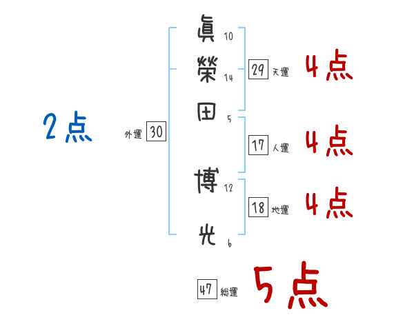 天運![]() | 眞榮田博光さんの天運は29画の4つ星!完全主義で才能がある。厳格な心の持ち主。 家系が持つ宿命的な運勢を表します。祖先から受け継いだ苗字ですので自分の力が及びません。家柄を象徴します。 |