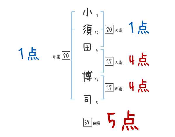 総運![]() | 小須田博司さんの総運は37画の5つ星!努力家で順応性に優れる。現実的な考え方ができ忠実に物事をこなす。 あなたの人生を表す1番重要な運勢です。生涯を通じて影響する総合運となり、主に50歳以降の晩年期に影響を及ぼします。 |
