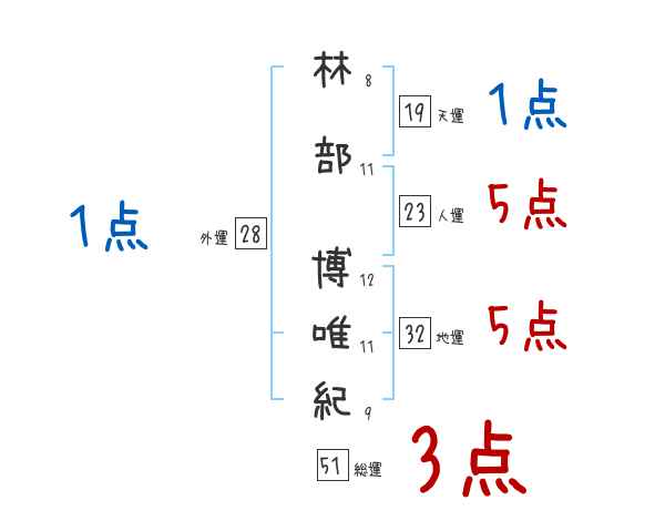 外運![]() | 林部博唯紀さんの外運は28画の1つ星!家庭環境に注意。スポーツで活躍できる能力があるかも。 生活面を象徴する運勢です。外部から受ける影響力を表し、結婚運、家庭運や職場、環境への順応性を表します。 |