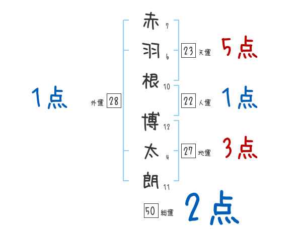 赤羽根博太朗さんの画数の鑑定結果