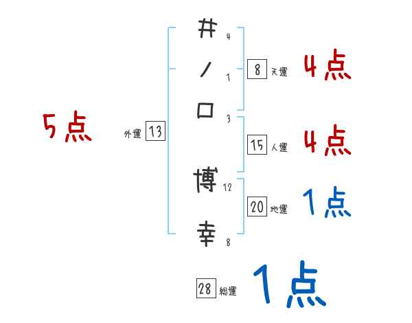 天運![]() | 井ノ口博幸さんの天運は8画の4つ星!勤勉家。根気強く努力し成功する。忍耐力がある。 家系が持つ宿命的な運勢を表します。祖先から受け継いだ苗字ですので自分の力が及びません。家柄を象徴します。 |