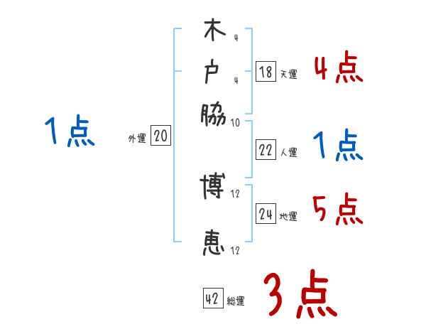 天運![]() | 木戸脇博恵さんの天運は18画の4つ星!情熱的で剛気。忍耐力があり信頼される。 家系が持つ宿命的な運勢を表します。祖先から受け継いだ苗字ですので自分の力が及びません。家柄を象徴します。 |
