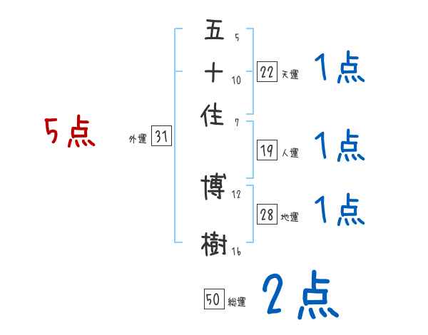 天運![]() | 五十住博樹さんの天運は22画の1つ星!努力することが苦手ないっぽう手先が器用。芸術性にも優れる。 家系が持つ宿命的な運勢を表します。祖先から受け継いだ苗字ですので自分の力が及びません。家柄を象徴します。 |