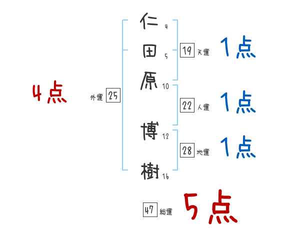 総運![]() | 仁田原博樹さんの総運は47画の5つ星!実力が開花し発展する円満な人生。財に恵まれる。 あなたの人生を表す1番重要な運勢です。生涯を通じて影響する総合運となり、主に50歳以降の晩年期に影響を及ぼします。 |