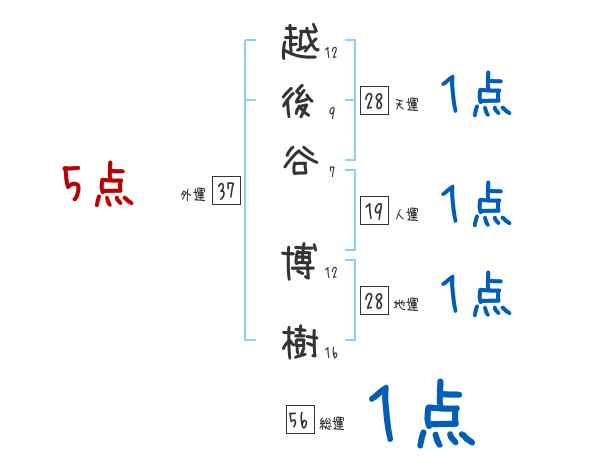 天運![]() | 越後谷博樹さんの天運は28画の1つ星!家庭環境に注意。スポーツで活躍できる能力があるかも。 家系が持つ宿命的な運勢を表します。祖先から受け継いだ苗字ですので自分の力が及びません。家柄を象徴します。 |