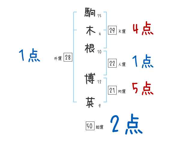 外運![]() | 駒木根博英さんの外運は28画の1つ星!家庭環境に注意。スポーツで活躍できる能力があるかも。 生活面を象徴する運勢です。外部から受ける影響力を表し、結婚運、家庭運や職場、環境への順応性を表します。 |