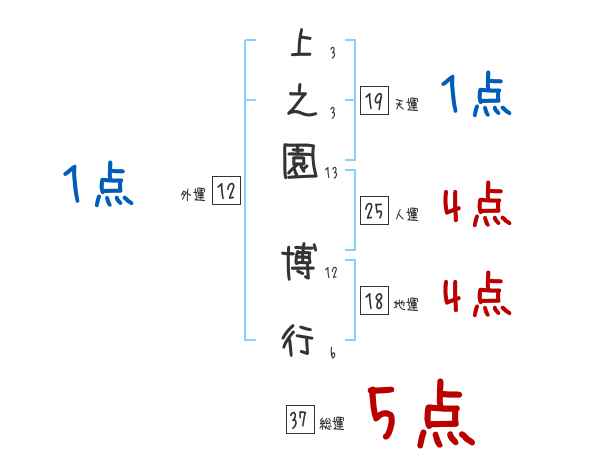 天運![]() | 上之園博行さんの天運は19画の1つ星!優れた才能を持ちますが、協調性が足りないことも。周りの人と協力する事を意識しましょう。 家系が持つ宿命的な運勢を表します。祖先から受け継いだ苗字ですので自分の力が及びません。家柄を象徴します。 |