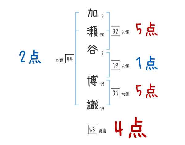 天運![]() | 加瀬谷博識さんの天運は32画の5つ星!柔軟性があり成功する。チャンスが多く金運が良い。 家系が持つ宿命的な運勢を表します。祖先から受け継いだ苗字ですので自分の力が及びません。家柄を象徴します。 |