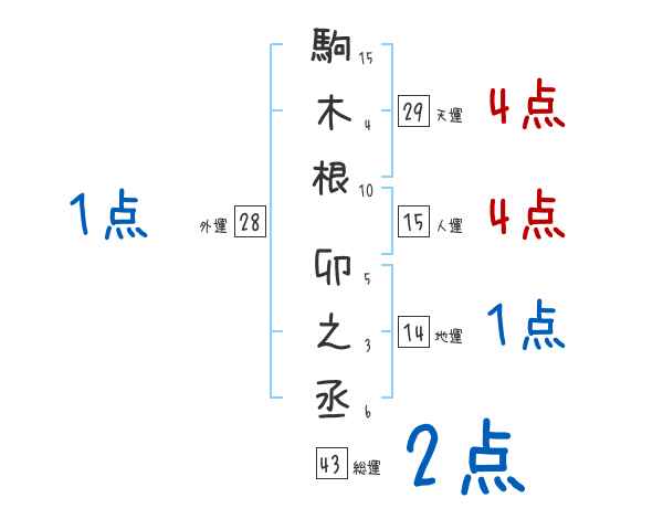総運![]() | 駒木根卯之丞さんの総運は43画の2つ星!頑固な性格で独立心が強いかも。やや非現実的で浪費に注意しましょう。 あなたの人生を表す1番重要な運勢です。生涯を通じて影響する総合運となり、主に50歳以降の晩年期に影響を及ぼします。 |