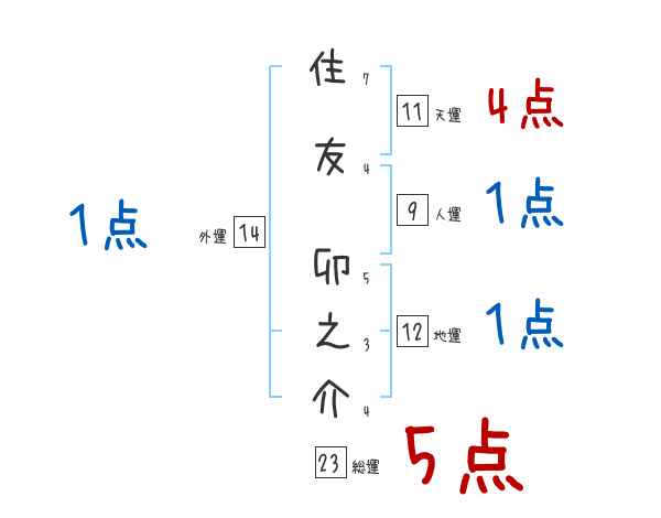 住友卯之介さんの画数の鑑定結果