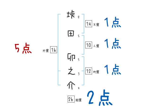 外運![]() | 垰田卯之介さんの外運は16画の5つ星!人望が厚く大きく発展する。逆転成功が見える。 生活面を象徴する運勢です。外部から受ける影響力を表し、結婚運、家庭運や職場、環境への順応性を表します。 |