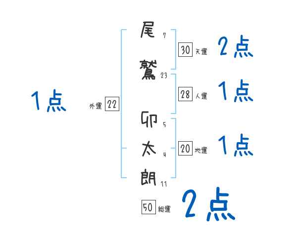 尾鷲卯太朗さんの画数の鑑定結果