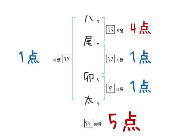 八尾卯太さんの画数の鑑定結果