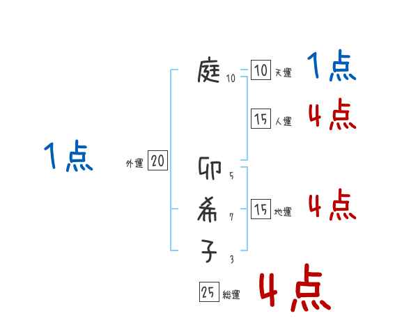 庭卯希子さんの画数の鑑定結果