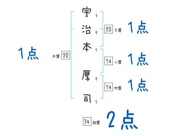 宇治本厚司さんの画数の鑑定結果